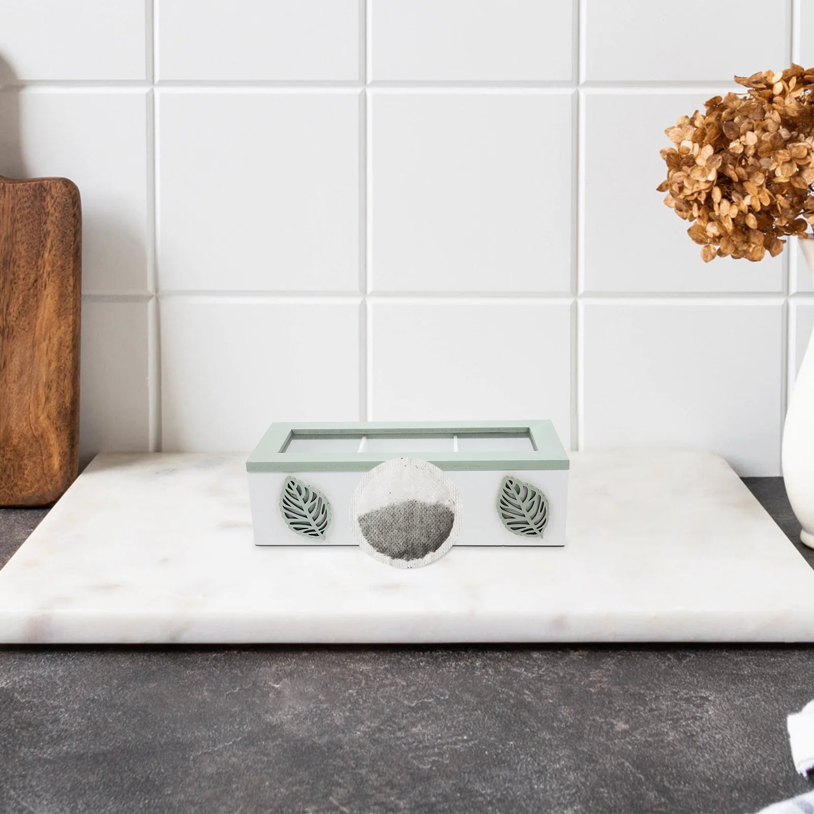 Découvrez notre élégante boite à thé au design naturel qui transformera vos moments d'infusion quotidiens. Cette boite à thé en bois blanc avec son couvercle vert transparent apporte une touche de fraîcheur à votre cuisine.