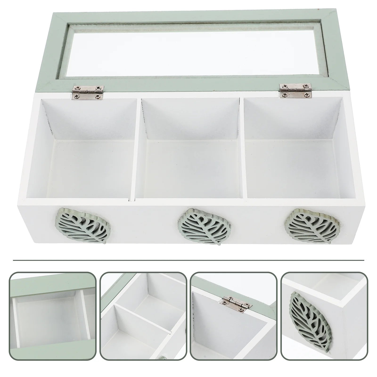 Boite à thé en bois avec 3 compartiments et motif feuillage