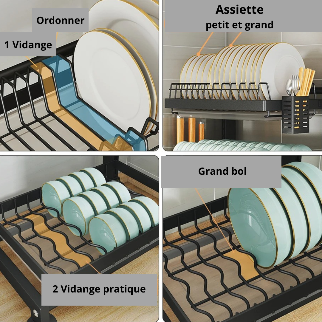 Avez-vous déjà ressenti cette frustration quand votre vaisselle s'empile chaotiquement près de l'évier ? Notre égouttoir à vaisselle à deux niveaux est la solution que votre cuisine attendait.