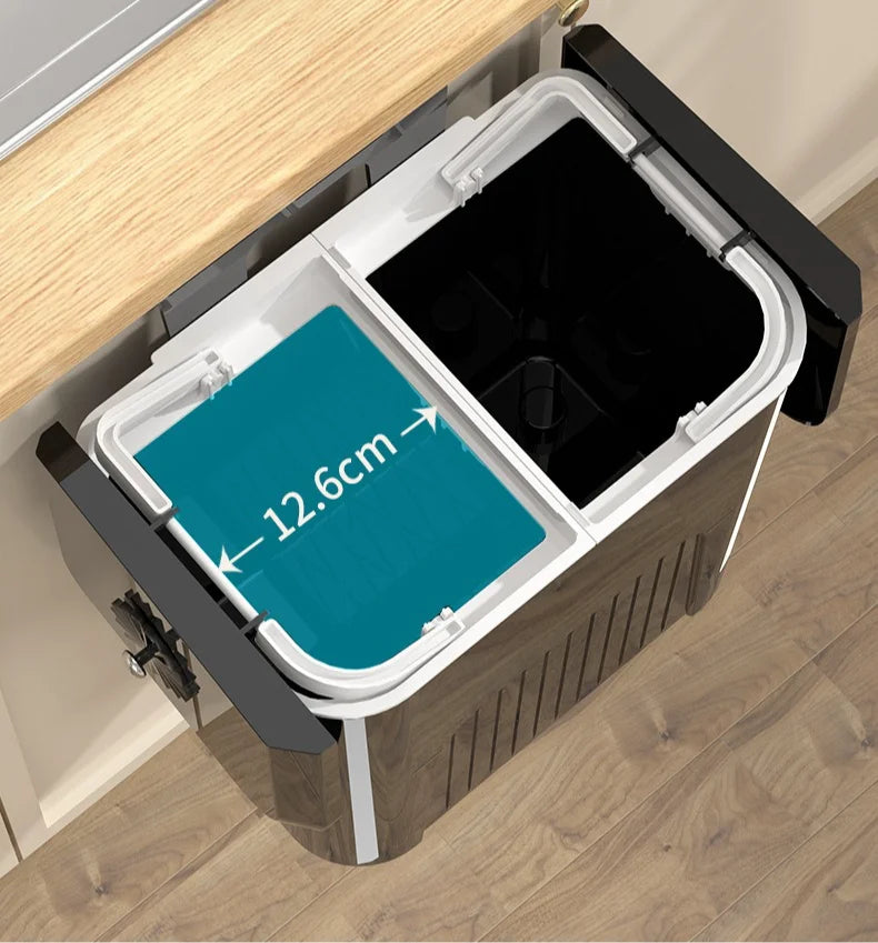Séparez facilement les déchets humides des déchets secs sans jamais toucher le couvercle. Le design intelligent vous permet d'éliminer les déchets d'une simple pression, même les mains pleines de farine ou d'eau.