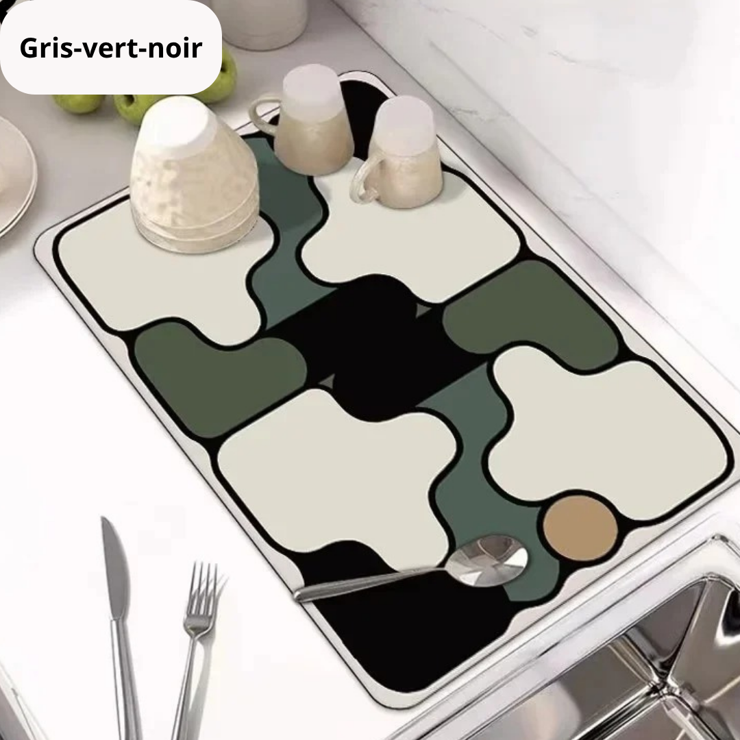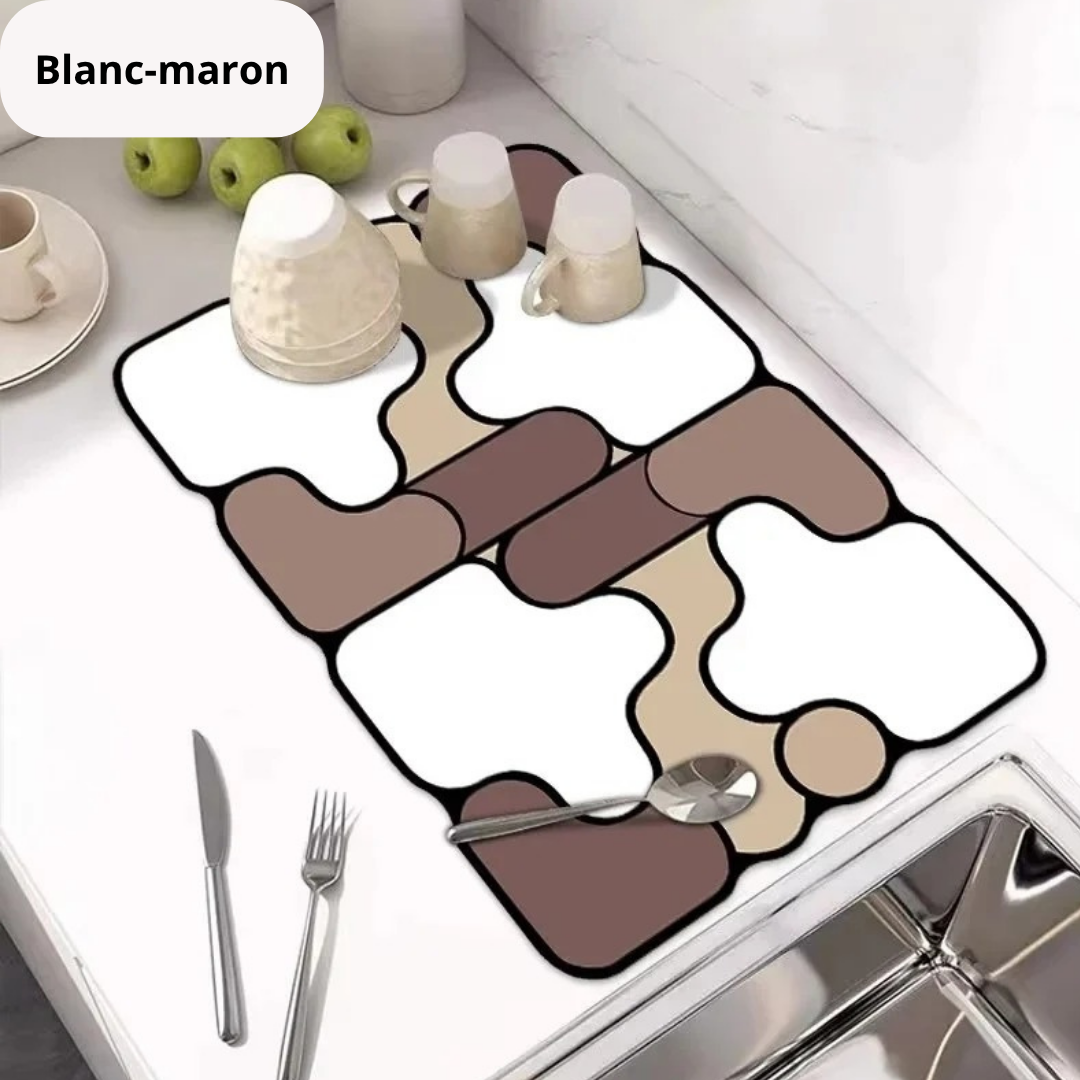 Marre des gouttes d'eau qui s'accumulent sur votre plan de travail ? Le tapis absorbant en forme de puzzle est la solution ludique que votre cuisine attend. Fini les torchons trempés qui traßnent.